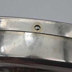 A small mechanical alarm clock made by Ingraham most likely in the 1970s or 80s. It still runs and it winds up easily; however the alarm doesn't work well (if you wind up fully it will go off regardless of when it is set up for). There are 2 small dings on its right side.