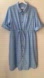 The light blue dress features a collared neckline, short sleeves, and a button-down collared front. It has an elasticated and functional drawstring waist for an adjustable fit.
