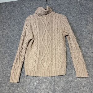 Inis Crafts Ireland Beige Cable Knit Turtleneck Sweater 100% Merino Wool Women’s S