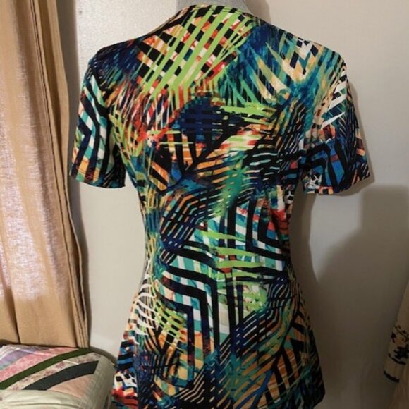 Initiatives Short Sleeve Summer Tunic with sequined yoke Made In Canada Size S