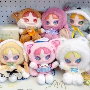 Cutest plushies ever from inns spring blind boxes, just got them theyre all in new condition and all are available, price is just for one!! A koala bear, polar bear, pink fox, orange fox, and reindeer :) selling this set cause I bought two. all for 100!!! Or 25-30 for one