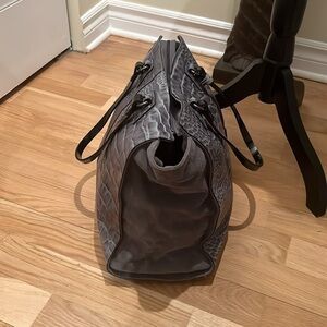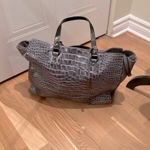Innuē brand - large grey leather snake skin bag w/ black handles.
