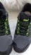 The shoes are primarily dark grey and black, with striking bright green accents on the laces, eyelets, and side detailing. The upper features a breathable mesh material, particularly visible on the toe box and sides, and reinforced sections for durability.