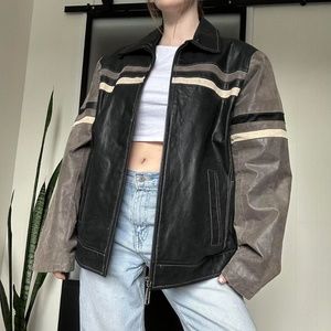 Insane Vintage 90s Cruze Striped Leather Racing Motorcycle Jacket