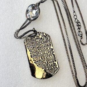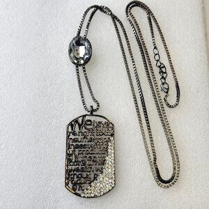 Long Dog Tag Necklace in a gun metal tone