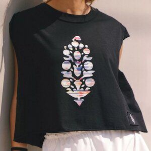 Your favorite wear-everywhere tank now featuring oversized buti logo detail at the front in a fun, mixed-print design. Color is Ikat Buti / Black Combo. Size S.