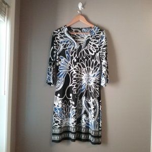 🌞 Inspiri Sheath Dress, V-neck Black, Blue, Small