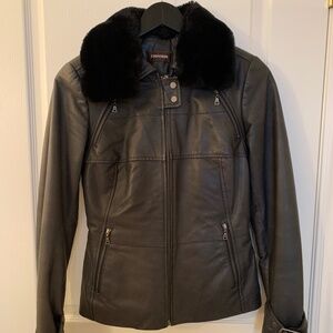 Insulated Danier Genuine Leather Jacket With Fur Collar - Size XS/2TP