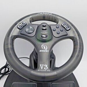 The InterAct V3 Advanced FX Racing Wheel is a vintage PC and Mac gaming accessory from the late 1990s, specifically designed for racing games. This model, endorsed by NASCAR driver Dale Earnhardt Jr., was known for its "Advanced FX" technology, which provided features like a realistic driving feel and programmable controls. It typically connects via a USB port, though some older models may have used a game port. The complete set includes the steering wheel, which often has a customizable turning radius, and a set of pedals for acceleration and braking. As a classic piece of gaming hardware, it is now a collectible item for enthusiasts of retro PC gaming.