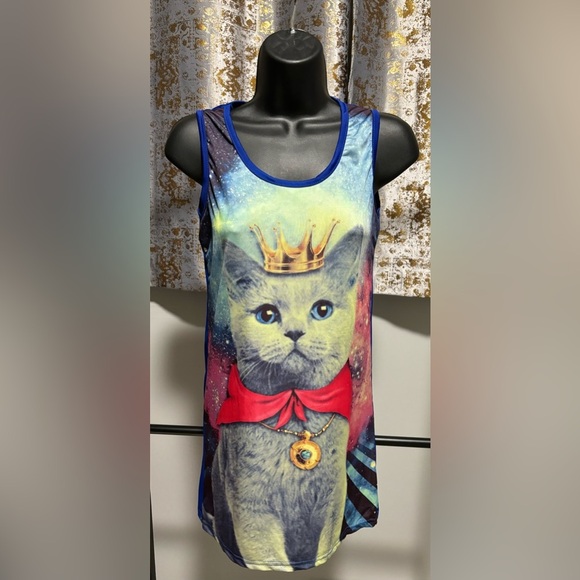 This whimsical tank dress features an intergalactic kitty adorned with a crown - the overlord we all deserve!