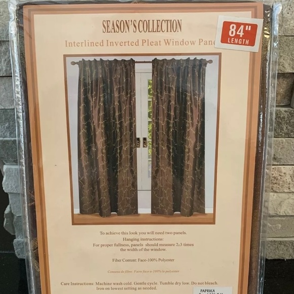Interlined Inverted Pleat Window Panel. 84” Length. Brand New Unopened. Brown.