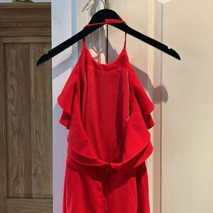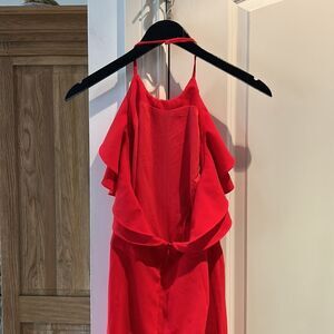 Intermix red ruffle neck halter jumpsuit large