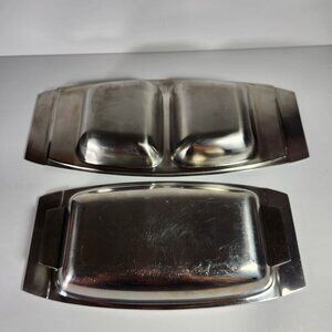 International Velvet Stainless Steel Tray Lot of 2 Snack Trays Made in Japan MCM