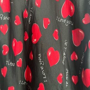 Intimate Style 100% silk slip dress. Black with a beautiful all over heart “I love you” “te amo” “Je t’aime” print. Faux corset back and spaghetti straps (adjustable). Beautiful silhouette. Nice and lightweight.