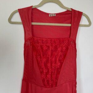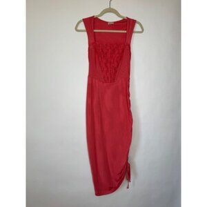 Intimately Free People Ruched Dress Lace Corset Coral Midi Bodycon Party