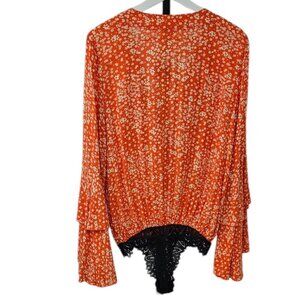 Intimately Free People Shes Ditsy Bodysuit, V-Neck, Floral, Lace Bottom, Size S