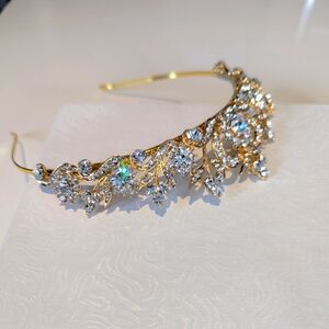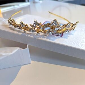 Intricate Gold Hair Tiara with Floral Design and Sparkling Crystals - NWT