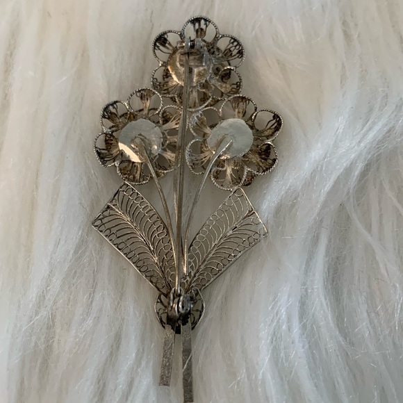 This exquisite silver brooch features a delicate bouquet of lacy, flower-like structures arranged in a fan formation. Crafted with intricate filigree patterns, it offers a sophisticated and airy appearance, perfect for adding elegance to any ensemble.