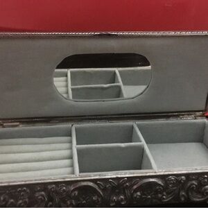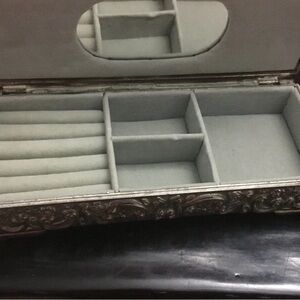 Vintage silver-plate Godinger 1992 jewellery box, gray inside. Perfect for your rings and your special jewelry. Great gift for your loved one. Gently used but please check pics over.
