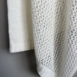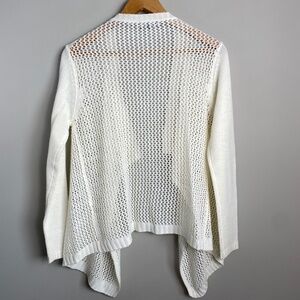 Introspect Womens Cream Open Knit Long Sleeve Cardigan Sweater Open Front Medium