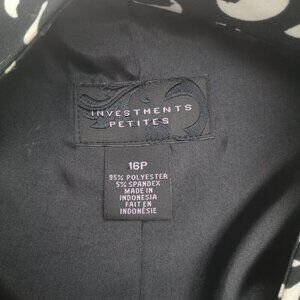 Investments Petites Ladies Size 16P Black & Ivory Pattern Fully Lined Blazer
