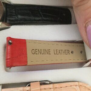 pink, red, white all are marked 100% leather and Invicta