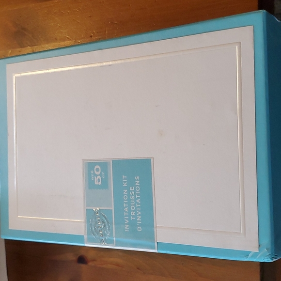 This is a kit to make invitations. It comes with invitations and envelops, and response cards and envelopes. The box has some wear and tear on it and is missing tape from one side but the contents have not been used. See pictures provided.