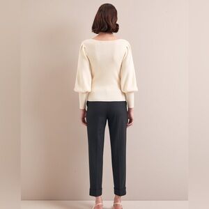 Beautiful puff sleeves add some character to this coat neck ribbed long sleeve top. Soft material makes this blouse a no brainer for comfort and class.