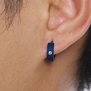 Ionic Plated Stainless Steel and Cubic Zirconia Blue Huggie Hoop