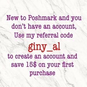 New to Poshmark and you don't have an account! Use my referral code GINY_AL to create an account and save 15$ on your first purchase.