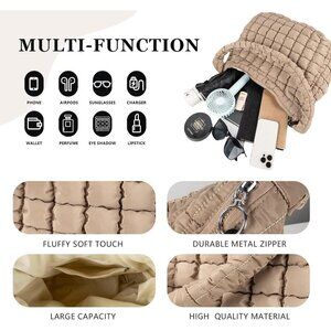 【Fluffy & Large Capacity】Quilted Travel Handbag is trendy, dust-proof surface and easy to carry. Soft and fluffy touch with large capacity, big enough to store all your makeup, tablet PC, toiletries, travel essentials and other daily necessities.