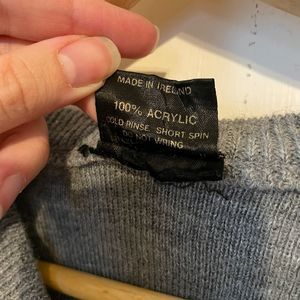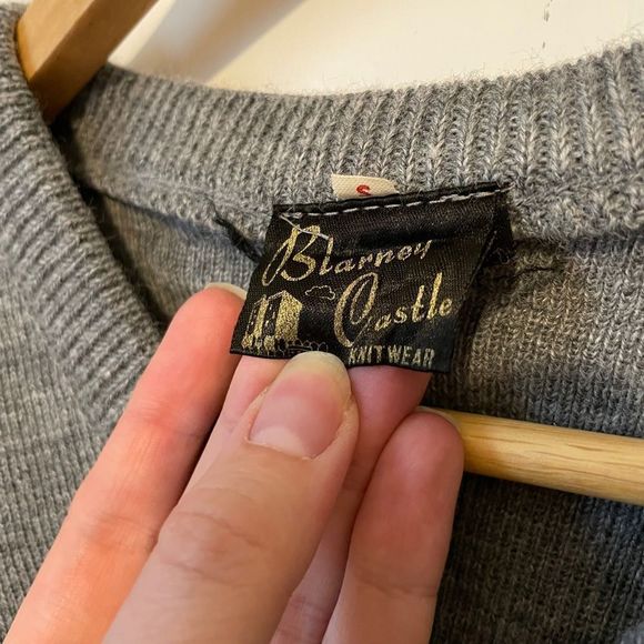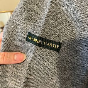 Vintage Irish Blarney Castle Sweater in an acrylic grey, marked Ireland on the front and Blarney Castle on the arm/tag