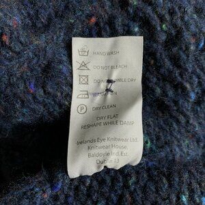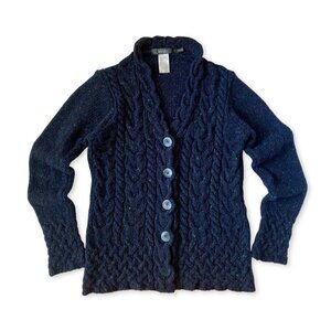 Irelands Eye Islander Wool Cashmere Horseshoe Cable Knit Cardigan Navy Blue Cozy