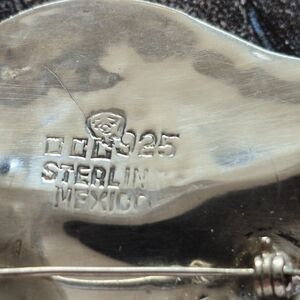 Stunning iridescent abalone shell brooch in a leaf design. Perfect for adding a touch of elegance. stamped