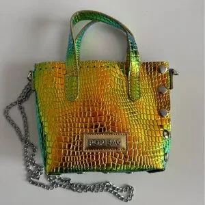 Stand out with the Iridescent Croc-Embossed Handbag.