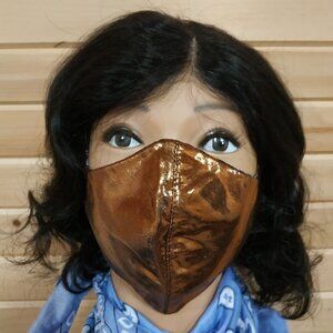 "Beak" style reusable cotton cloth face mask, in beautiful iridescent gold