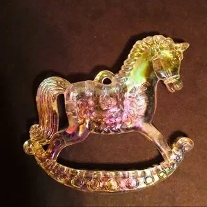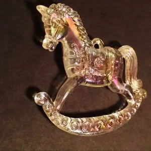 This iridescent “ice” (plastic resin) rocking horse ornament looks magical on the tree!
