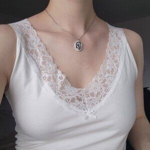 Iridescent Victorian Gothic floral necklace with a small silver chain