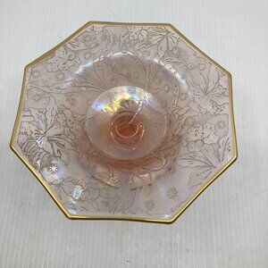 Iridized Fostoria Pink Brocaded daffodils Carnival Glass Bon Bon Dish Gold