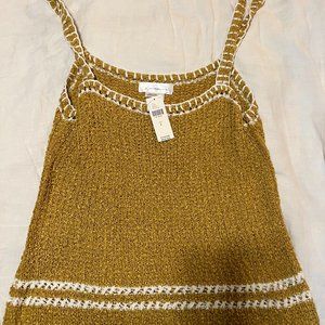 Knit tank in mustard with white accent knits.