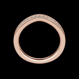 Featuring a slight curve, the Iris Bold wedding band fits snugly against its other half, the Iris Bold engagement ring. Dainty lab grown accent stones shine bright in a channel set setting to ensure this ring sparkles and shines.