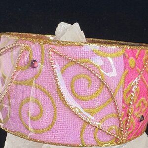 Unique handcrafted bangle from Iris Designs.This piece is made from paper mache, rhinestones, ball chain, glitter and resin.;1.5" wide and 2.75" in diameter (inside). Medium. This piece has never been worn and was from an art gallery/shop that I used to own.