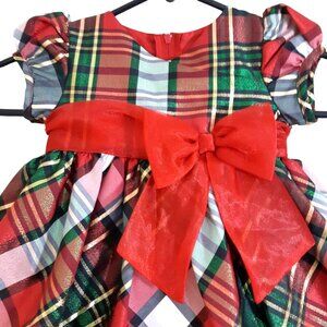 Iris & Ivy Girls 12M Red Green Black Gold Plaid Christmas Holiday Dress Shimmer Metallic Bow Ruffle Puff Sleeve