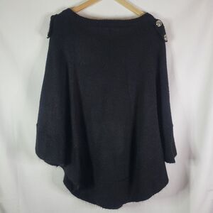 Elegant black poncho with stylish silver crested buttons from Dunnes Stores in Ireland. Perfect for layering. Lovely cosy soft and warm acrylic knit. EUC. Spare button included inside. One size fits most but labelled a M