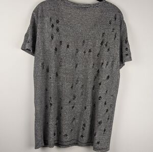 Burnout linen dotted with punctured holes gives this long striped tee a worn in , look