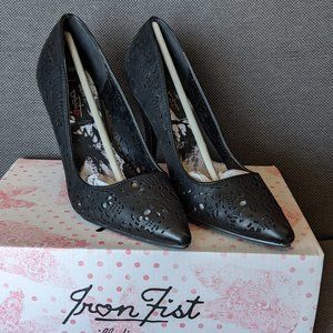 4" Iron Fist heels with cut out skull pattern. Worn twice. Size 36 EU, 6 US. It says US 5 on them, but I'm a size 6, and they fit me. Pretty comfy.