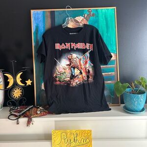 Embrace your rock spirit with this Iron Maiden black graphic tee. Perfect for any fan, this shirt features a striking design that captures attention.