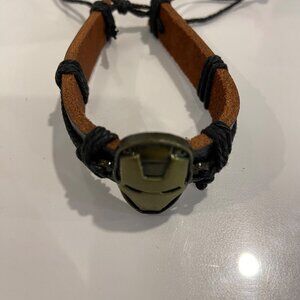 Item keywords: Iron Man bracelet, superhero accessory, leather strap, adjustable bracelet, metal charm, Marvel fan, unisex bracelet, Avengers, wristband, black cord, collectible bracelet, stylish accessory, hero-themed jewelry, men gift, dad brother boyfriend present.