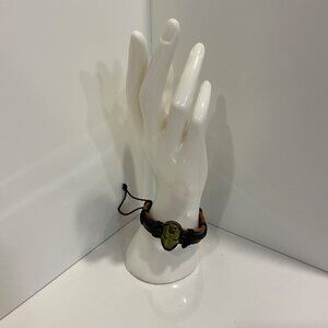 Iron Man style Leather Adjustable Bracelet With Black Cord & Metal Charm