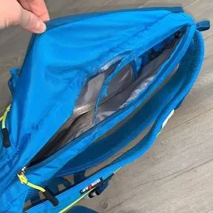 There is a hole and tear in the side of the backpack. I washed it and didn’t put it on gentle cycle and the side zipper cover is ripped, noted in pictures. I was going to cut off the covering, but wanted to leave it if someone wants to fix it or cut it off themself